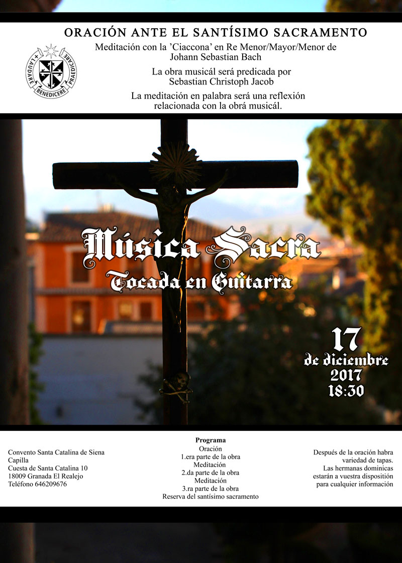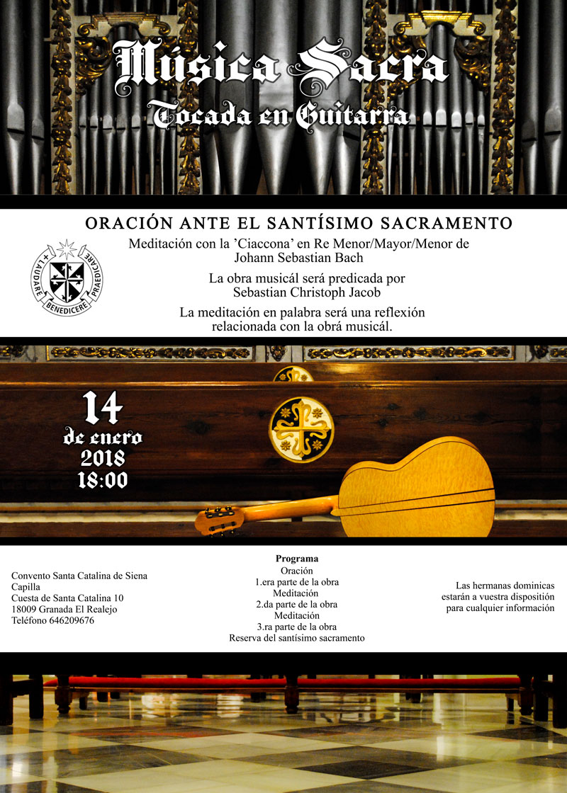 Sebastian Christoph Jacob spielt erneut in der Reihe "Musica Sacra" Barockimprovisationen und die Chaconne in D-Moll von Johann Sebastian Bach (Partita II, BWV 1004) auf der Orgelempore der Klosterkirche des Dominikanerinnen-Konvents Santa Catalina in Granada, Spanien.