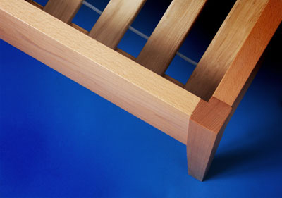 Rotbuche massiv, weiter Abstand zwischen Matratzen- und Rahmenoberkante, auslaufende Gliederverjüngungen, Längen- Breiten- und Höhenabmessungen variabel, leichte Steckmontage. Das Lattenrostsystem vereint elastische Festigkeit mit außerordentlicher Stabilität und fördert gesunden Schlaf.